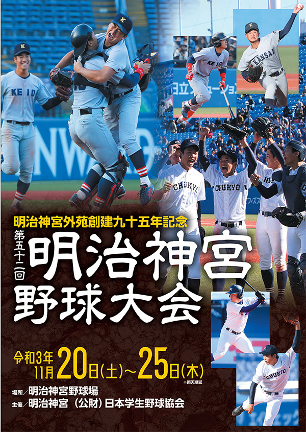 明治神宮野球場 公式 On Twitter 第五十回記念 明治神宮野球大会 ポスターデザインが決定しました 5 0 回の記念大会 ということで これまでの大会で活躍された選手の方々をデザインに盛り込みました プロ野球やメジャーリーグで活躍された選手